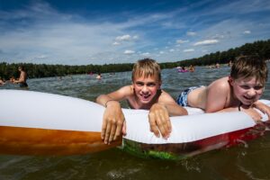 Le magnifique plan d’eau avec son sable fin est la carte maîtresse du site. Les plus jeunes y trouveront un kart, des minicars, des trampolines et toutes sortes d’animations, les plus grands toutes sortes d’activités sportives. Les plus téméraires s’en donneront à coeur joie dans le parcours de hauteur du bois d’exploration. Le site permet de se promener à pied ou en vélo des heures entières.
